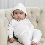 Wrap your little one in cozy cuteness with our Snuggle Stripe 3-Piece Set! This adorable outfit features a soft knit fabric in a creamy white base, delicately kissed with blush pink stripes for a timeless, picture-perfect look. The long-sleeve top and matching pants are designed for all-day comfort—perfect for tummy time, nap time, or a stroll in the park. With stretchy cuffs and a comfy waistband, it's an easy-on, easy-off dream for busy parents and wiggly little explorers.