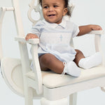 Introducing our Blue Hand Smocked Cross Baby Boy Bubble Romper – a charming choice for resellers! Featuring exquisite hand-smocked detailing and a cross design, this romper exudes elegance and charm. Perfect for special occasions or everyday wear, it's sure to be adored by parents. Stock up now and offer your customers quality and style they'll love!